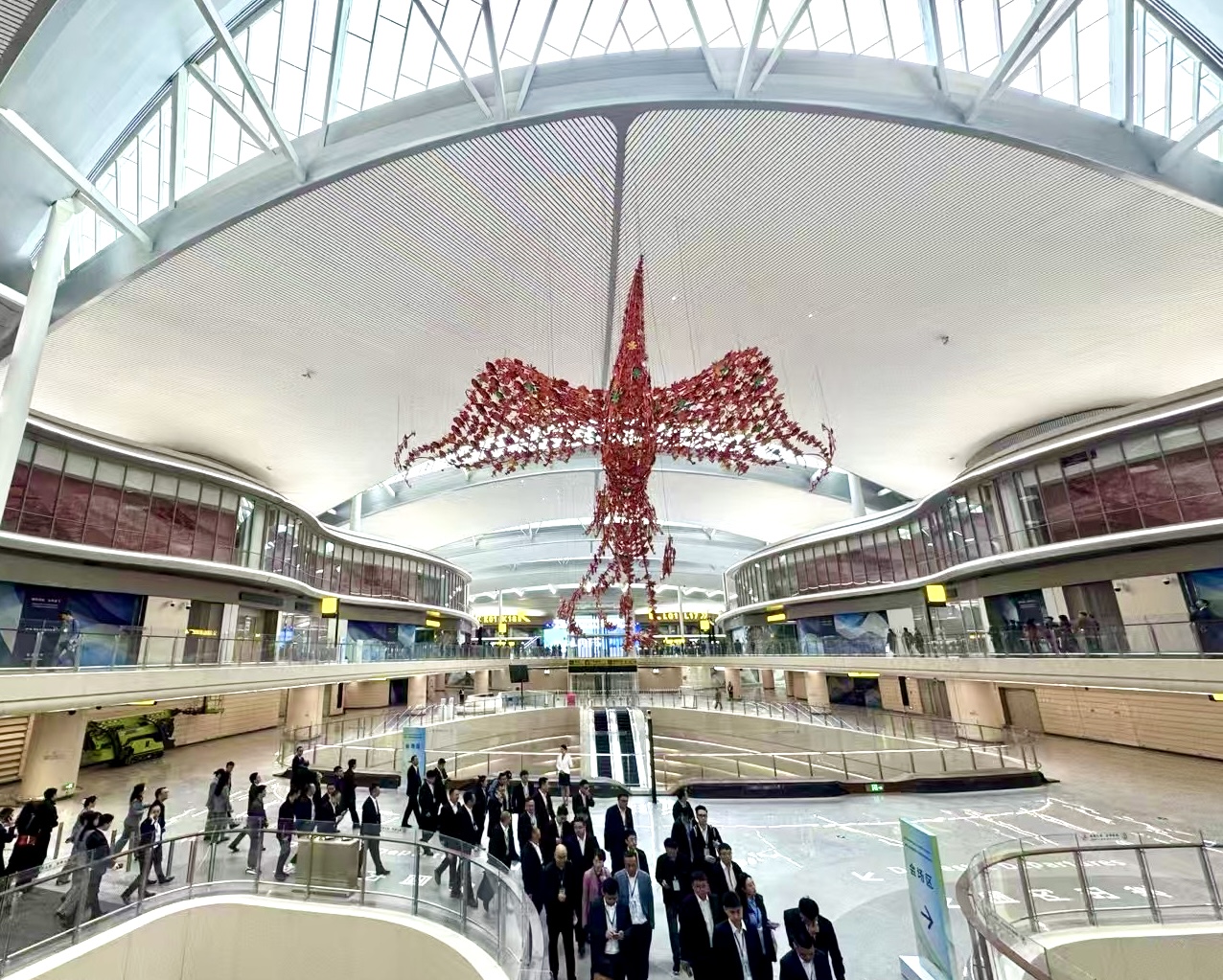 在建筑造型與空間布局上,T3B航站樓采用鯤鵬展翅與兩江匯流:整體造型取意“大江奔流、崇山峻嶺”,屋頂設計融合“兩江匯流、鴻鵠展翅”的地域元素,體現(xiàn)重慶山水特色;以及8D立體空間:通過扶梯、捷運系統(tǒng)等交通布局,模擬渝中母城“山環(huán)水繞、上下半城”的立體形態(tài),旅客可感受層次豐富的空間體驗。