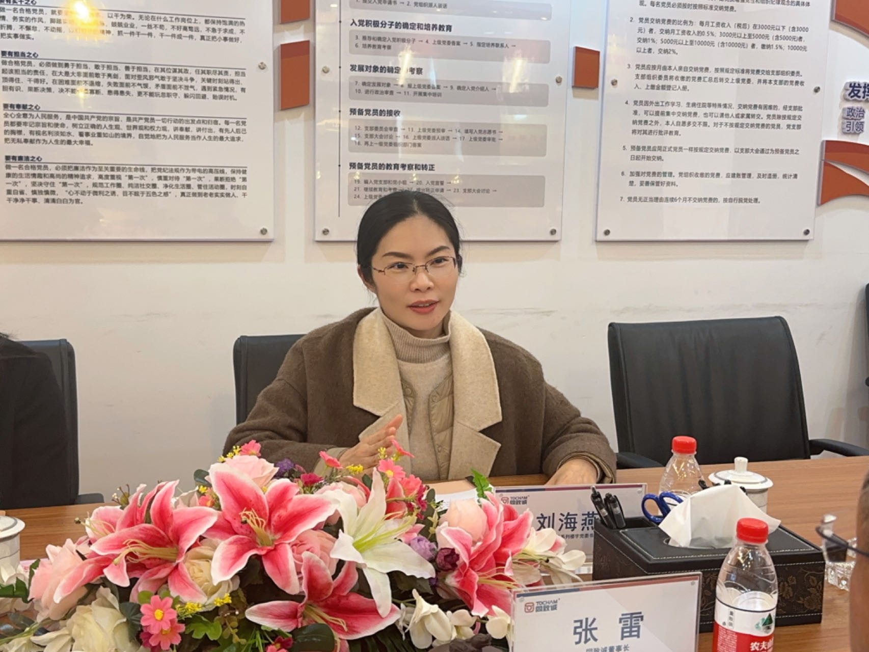 在聽取張雷董事長和劉星書記的匯報后,劉海燕書記對我司的經營發展和黨建工作開展給予了充分的肯定,尤其贊許了我司的“三項機制”,認為它在風險管控、廉政建設方面發揮著重要作用。劉書記還談到,黨建工作和業務工作不能搞“兩張皮”,不能就黨建談黨建,一定要和企業的生產經營結合起來,而結合的點有“三個力”:一是生產力,通過黨員認領業務等,積極發揮先鋒模范作用,提升企業的生產力,促進企業發展壯大;二是競爭力,把公司骨干發展成黨員,把黨員培養成業務骨干、中堅力量,通過“雙培養”的方式,完善人才隊伍建設,提升企業的核心競爭力;三是凝聚力,無論是國家與企業,還是企業與員工,我們要自覺在思想上政治上行動上同黨中央保持高度一致,增強凝聚力。同時,劉書記向與會人員介紹了星系列樓宇黨委的特色工作,表示星系列樓宇黨委在為企業提供法律援助、行業交流、員工培養、文化活動等方面具有成熟的經驗和方法。黨委始終和企業站在一起,也是企業的資源,我們可以以黨建作為橋梁擴大企業的朋友圈,為企業做好服務保障,助推企業健康發展。