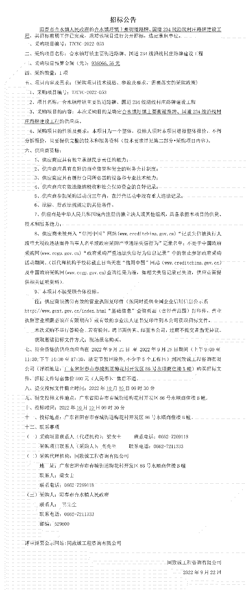 合水鎮(zhèn)圩鎮(zhèn)主要街道路牌、國道234線沿線村莊路牌建設工程