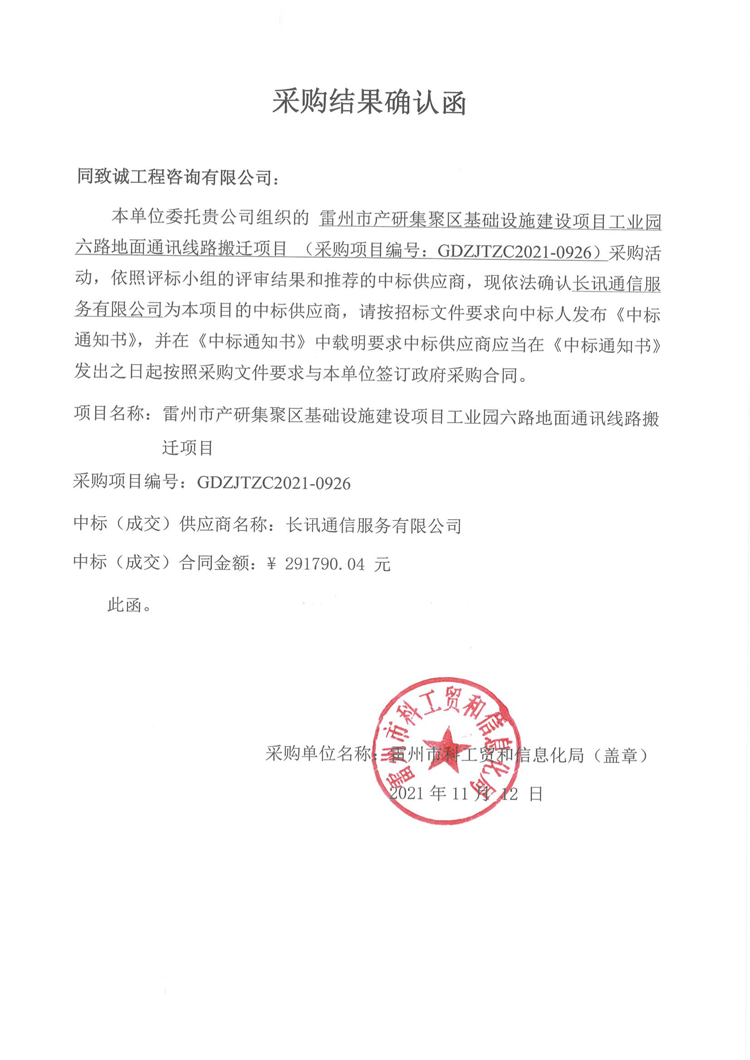 雷州市產研集聚區基礎設施建設項目工業園六路地面通訊線路搬遷項目